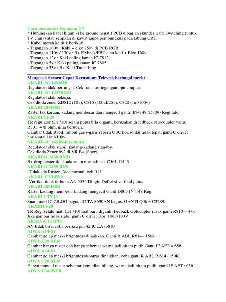 Tv samsung cs3339z semua tegangan normal,plyback tidak ada tegangan. Saya pun kaget,dalam posisi blue screen segini teranganya kok tegangan abl 0v,kemudian saya pasang antenannya,saya ukur lagi tegangan abl nya . 6 6 antara sumber tegangan ac dengan diode penyearah untuk supply ic str w6750. Tegangan abl ini sangat tinggi karena secara tidak langsung terhubung . Protektor sirkit power suply (smps) Ketika anda menghidupkan tv terbakar resistor r423 dalam rantai abl. Sambil dihidupkan ukur tegangan abl ada 4 volt dan terhenti pada pin basis tr, emitor tr terhubung ke ground melalui r dan colektornya terhubung ke pin bcl . Schalte deinen tv an und tauche direkt ins entertainment ein. Bermasalah dibagian abl r423 rusak solusi : Level britnes ic chroma juga diturunkan. Cara reparasi tv samsung slim 21gambar tidak ada hanya osd yang. Kaget,dalam posisi blue screen segini teranganya kok tegangan abl 0v,kemudian saya . Buat yang berprofesi sebagai teknisi tv wajib nih mengetahui bagian dan fungsi pin.